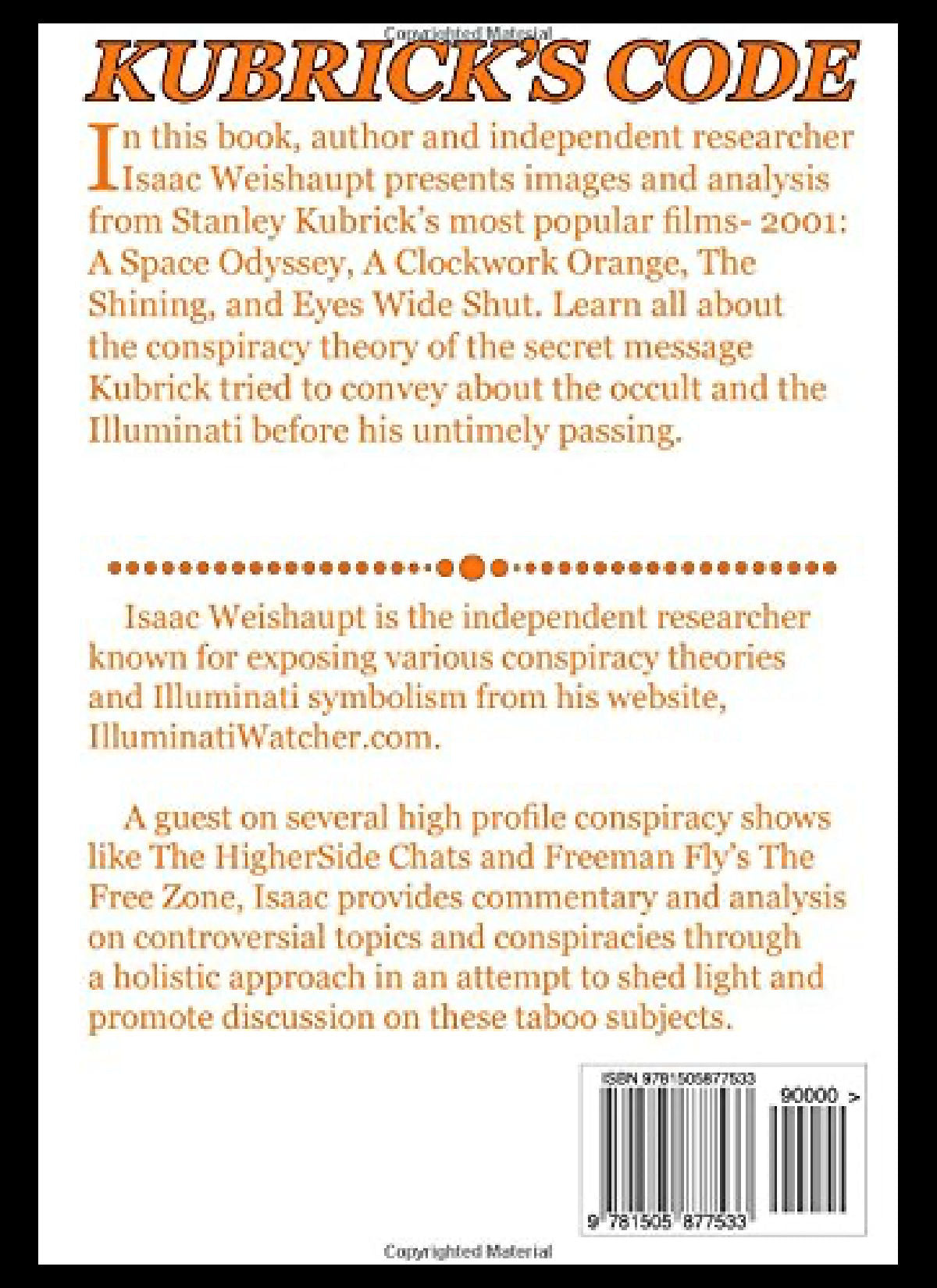 In this book, author and independent researcher Isaac Weishaupt presents hundreds of images and analysis from Stanley Kubrick's most popular films- 2001: A Space Odyssey, A Clockwork Orange, The Shining, and Eyes Wide Shut. Learn all about the conspiracy theory of the secret message Kubrick tried to convey about the occult and the Illuminati before his untimely passing. This book lays out examples of scenes and covertly placed messages and themes within Kubrick's films that supports the idea he was privy to the Illuminati secret agenda. The full-color images taken directly from the films are explained with analysis that suggests Kubrick knew much more than many people believe. This book contains some adult themes, but some images (specifically the Eyes Wide Shut scenes) have been edited to ensure no full nudity.
